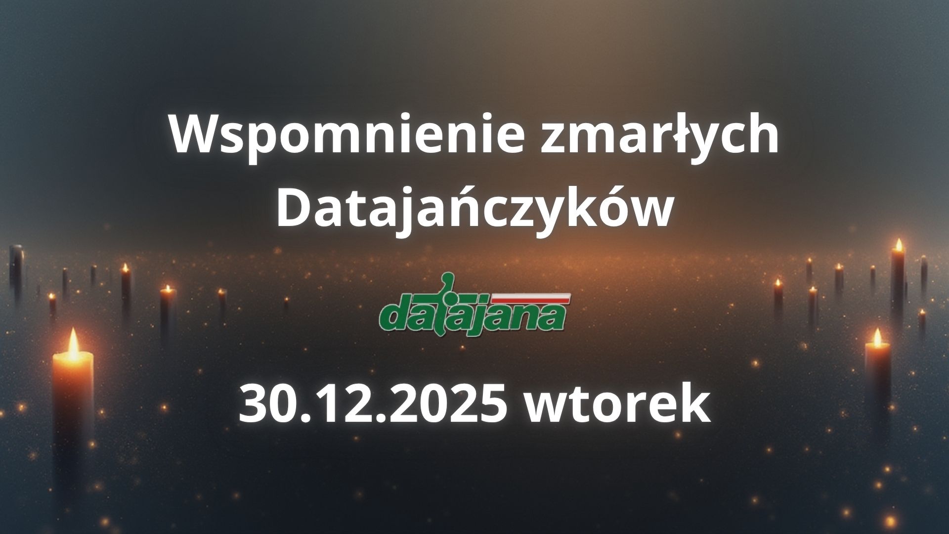 Zapraszamy na mszę świętą w intencji zmarłych członków Klubu Turystycznego „Datajana”, która odbędzie się we wtorek, 30 grudnia 2025 r. o godzinie 18:00 w kościele św. Jozafata przy ul. Waldorffa 1 (dawny adres: ul. Powązkowska 90, Warszawa).
